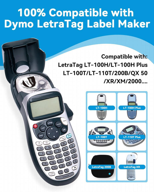 3X Vixic Label Maker Tape Replace for Dymo Letratag Label Maker Refills, Compatible with Dymo Lt-100H Lt-100T Lt-110T Qx50 Label Maker & P12 Pro, Heat Resistant Self Adhesive, White on Black, 12mmx4m