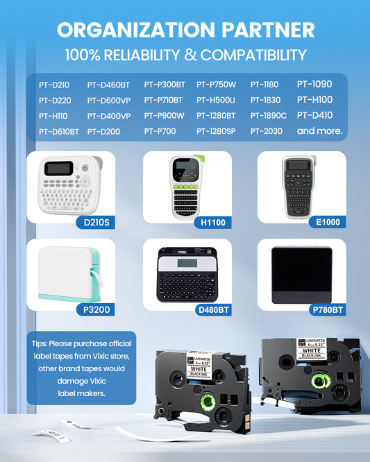 6mm Label Tape TZe-211 Compatible with Brother TZe TZ Tape 6mm 0.23 Laminated White BZ Tape 1B21Z for Vixic D210S H1100 D480BT P780BT E1000 P3200 & P Touch PT-D220 PT-D210 PT-H110 PT-D400 Label Maker